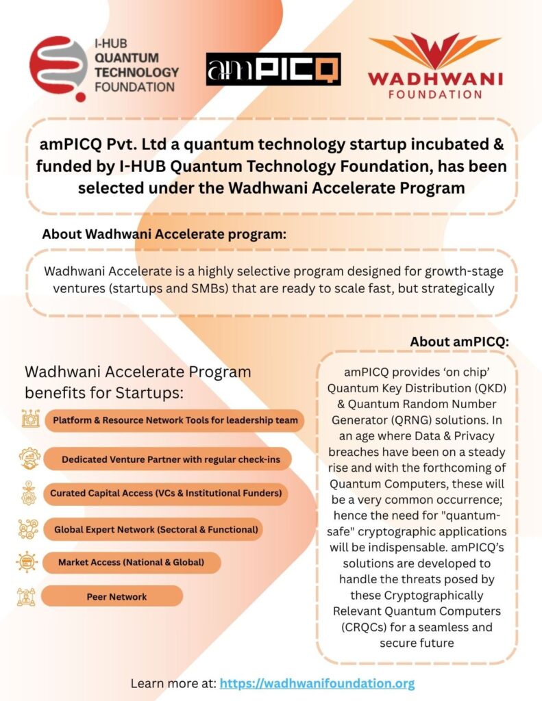 We are delighted to announce that amPICQ is one of the startups selected by India's prestigious I-HUB Quantum Technology Foundation's incubation program. As a result, amPICQ was sanctioned a total of 48 Lakhs over the course of two years as a part of the program